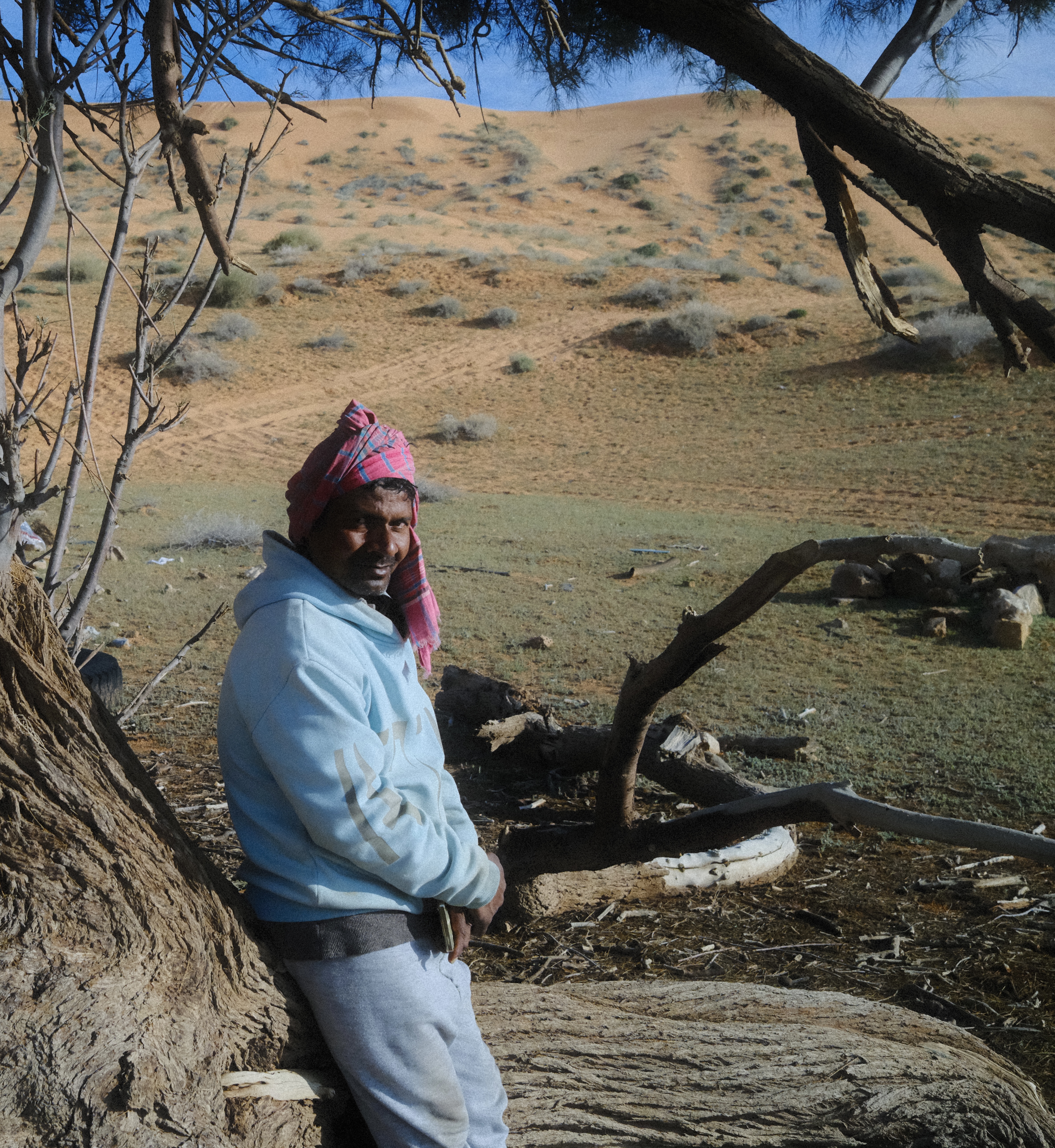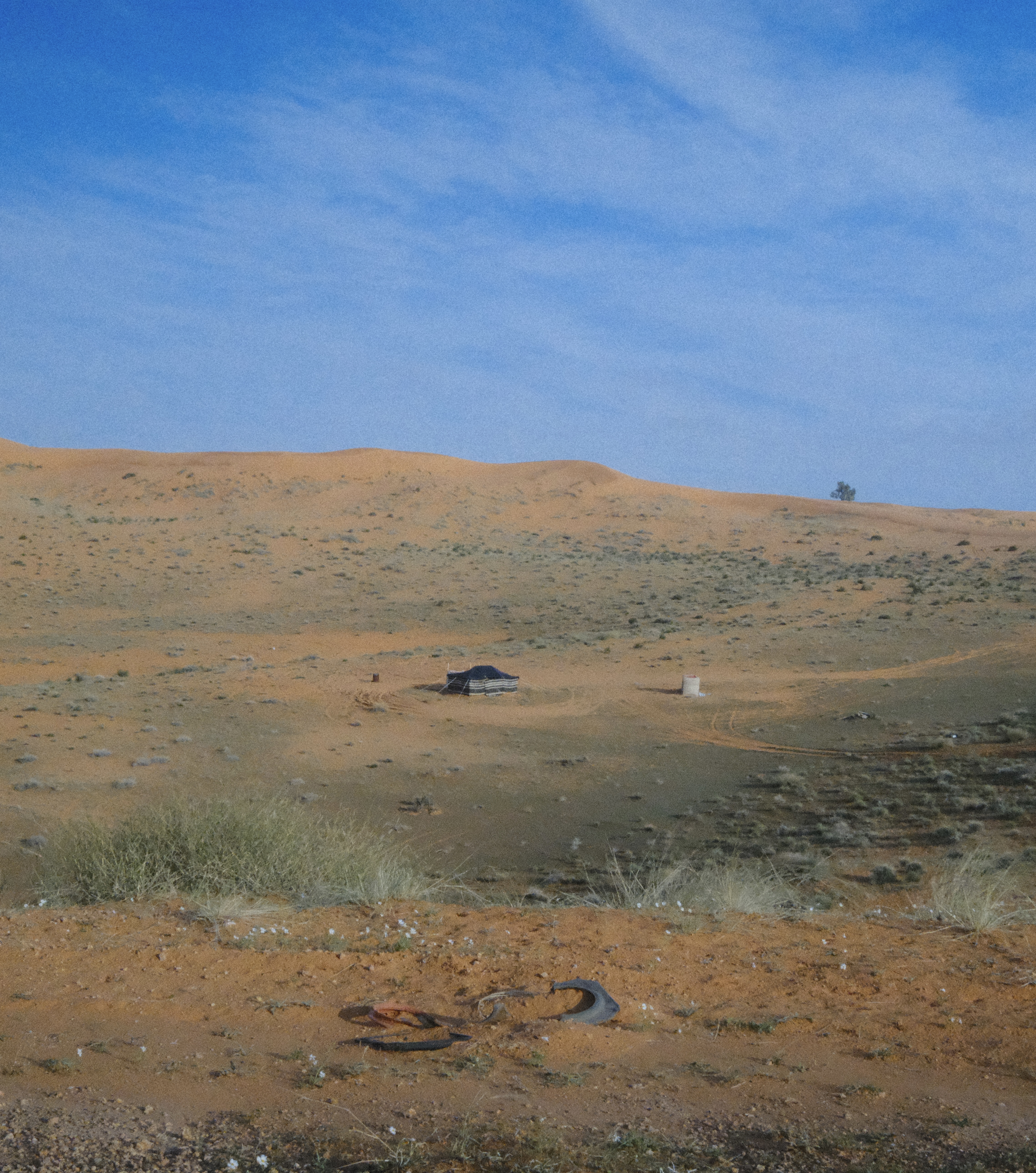 في السنوات الماضية فُتَح طريقٌ زراعي، إزفلته وخطوطه الصفراء تتلامع في جِدّتها، ولا تعكس إلا أطيب أنواع السراب، وتُورّى لي في حياة زولك، تقف على خطّ المدى، ظلّ لا نميّزه يرتعش، ويتدلى شماغك المربوط على رأسك مثل جديلة حمراء. اليوم أصبحت شجرتك هكذا، شجرة على جال الطريق، لا يميّزها شيء، وستحقر الكشتة تحتها، مثل ما كنت تحقر كل من يكشت على جال الطريق، وتقول أن الأرض وسيعة لا يحدّها إلا رفالة الناس. وَجدت تحتها راعي يستظل، صوّرته، وأصر علي أن أصوّر قطيع الأنعام التي يرعاها، وبدا لي أنه يريد إثبات علة وجوده هنا، وأن المكان ما زال قاصي، لن يقف فيه إلا الرعاة، ومجانين الكشّاتة.